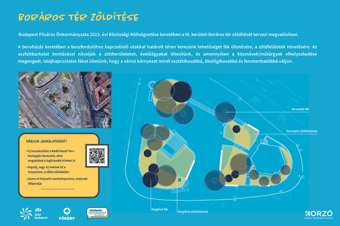 Budapest Főváros Önkormányzata 2023. évi Közösségi Költségvetése keretében a IX. kerületi Boráros tér zöldítését tervezi megvalósítani.