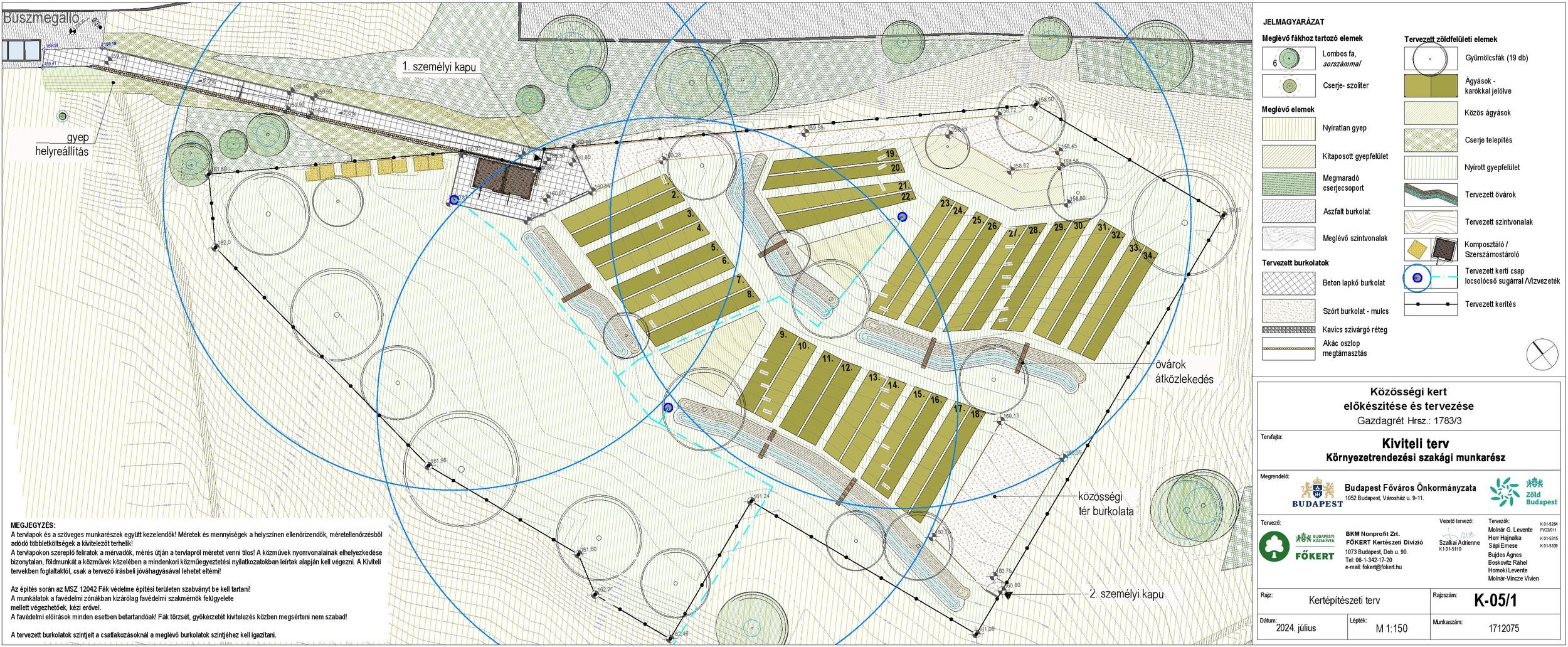 - 2024 április: A kertész közösség számára 3 vázlattervet mutattunk be a közösségi kert kialakítására, melyek közöl a közösség az „Övárok” változatott választotta.