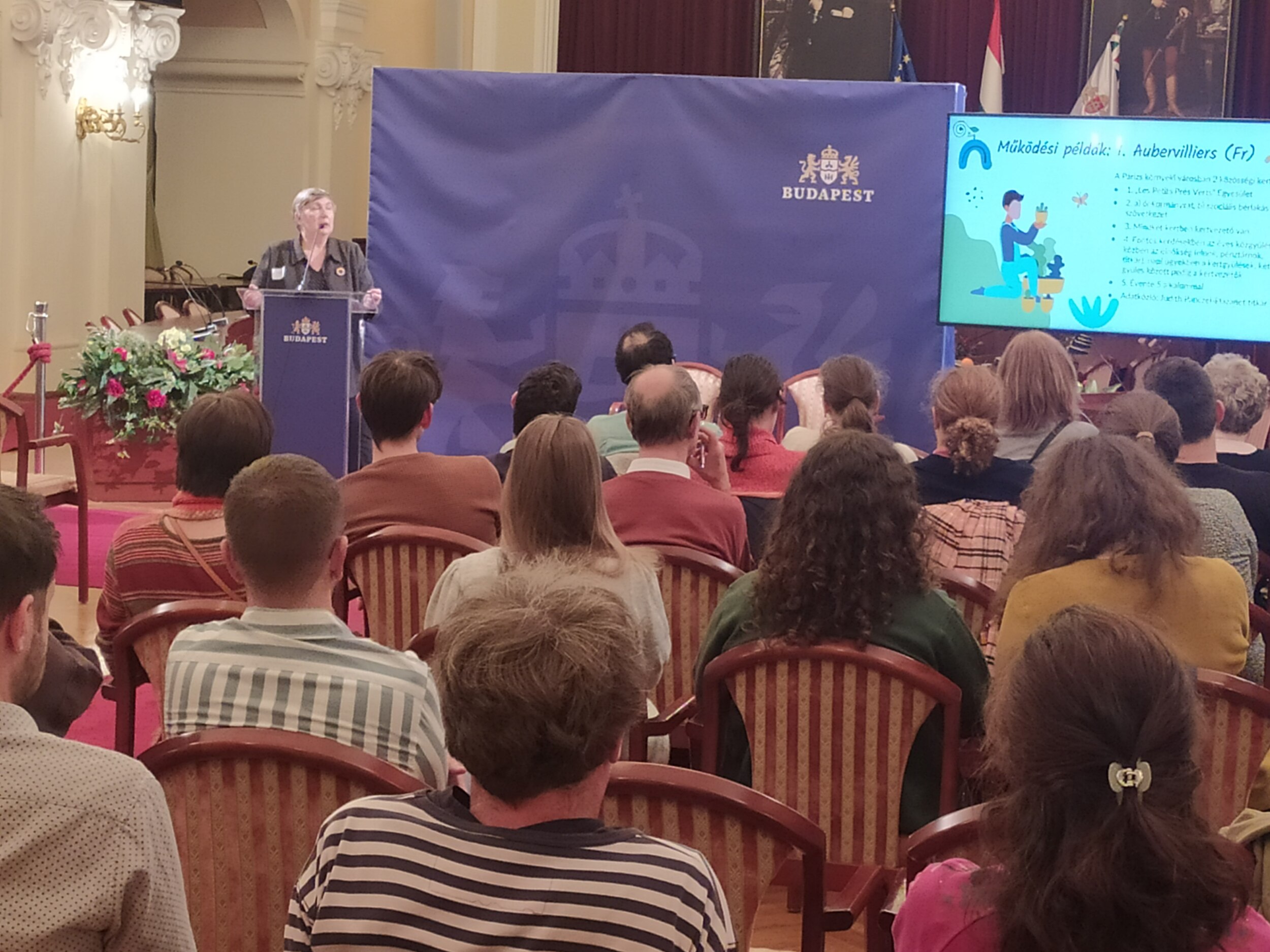 A Fővárosi Önkormányzat szervezésében minikonferenciára hívtuk meg a közösségi kertek kialakítására tervezett három helyszínen kertészkedésre jelentkezőket. A Kerpel-Fronius Gábor főpolgármester-helyettes által megnyitott rendezvényen Kertész Monika, a Kortárs Építészeti Központ és Dr. Pánczél Mária, a ZUG Közösségi Kertekért Egyesület szakértői tartottak szakmai előadást a közösségi kertek kialakításának és üzemeltetésének tapasztalatairól. Ezt követően helyszínek szerinti munkacsoportokban kezdték meg a beszélgetést a leendő kertészek, a meghívott szakértők és a tervezők arról, hogy mi legyen a leendő közösségi kert működtetésének szervezeti kerete, hogyan alakítsák ki a közösségi kertet illetve, hogy mi legyen a közösségi kertek házirendje.