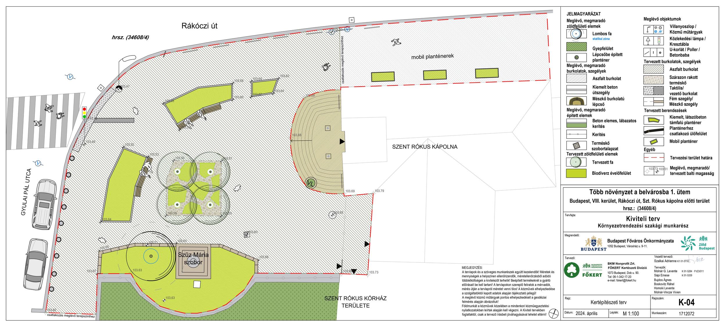 A Fővárosi Önkormányzat közösségi költségvetés „Több növényzet a belvárosban” projekt keretében múlt év őszén kezdtük meg a Rákóczi úton, a Blaha Lujza tér és az Astoria között található Szt. Rókus kápolna előtti aszfaltozott tér zöldfelületi fejlesztési terveinek készítését. A múlt évi lakossági workshopon elhangzottak figyelembevételével, figyelemmel a műemléki környezet értékmegőrzési szempontjaira készítettük el a zöldfelületi és közösségi tér fejlesztés kiviteli terveit. A beruházás keretében az alábbi fejlesztéseket tervezzük megvalósítani: