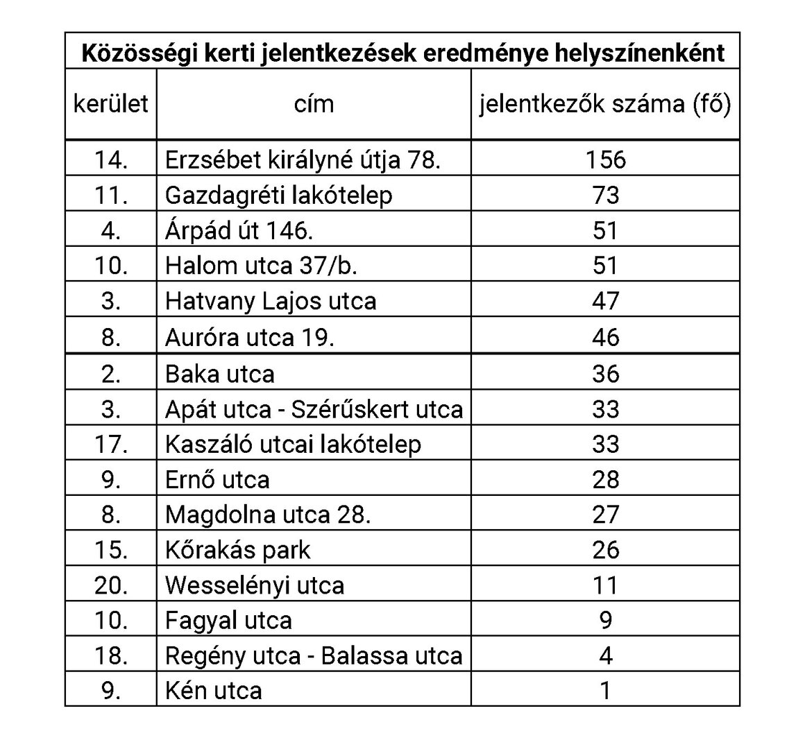 November hónapban az első hat legtöbb szavazatot kapott helyszínen helyszíni workshopot szervezünk a jelentkezések megerősítése és a leendő kertek üzemeltetésére vonatkozó együttműködések előkészítése érdekében. A tervezést azon a három helyszínen fogjuk elindítani legtöbb jelentkező és az üzemeltetési, működési feltételek teljesíthetőek.