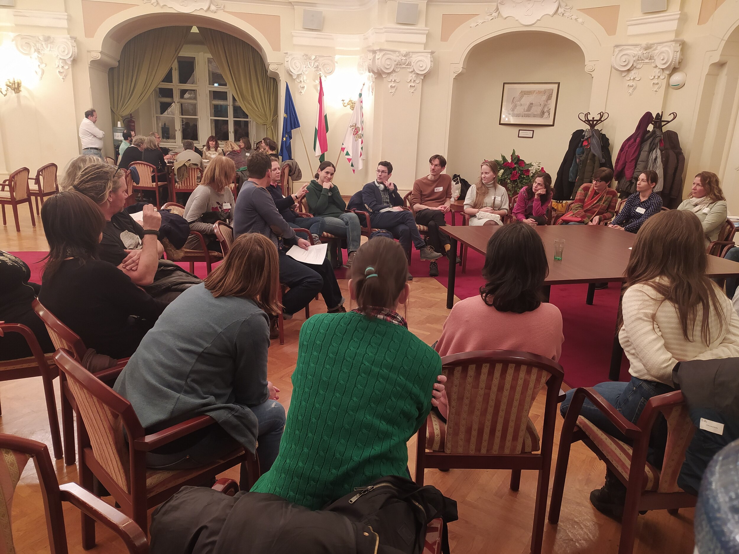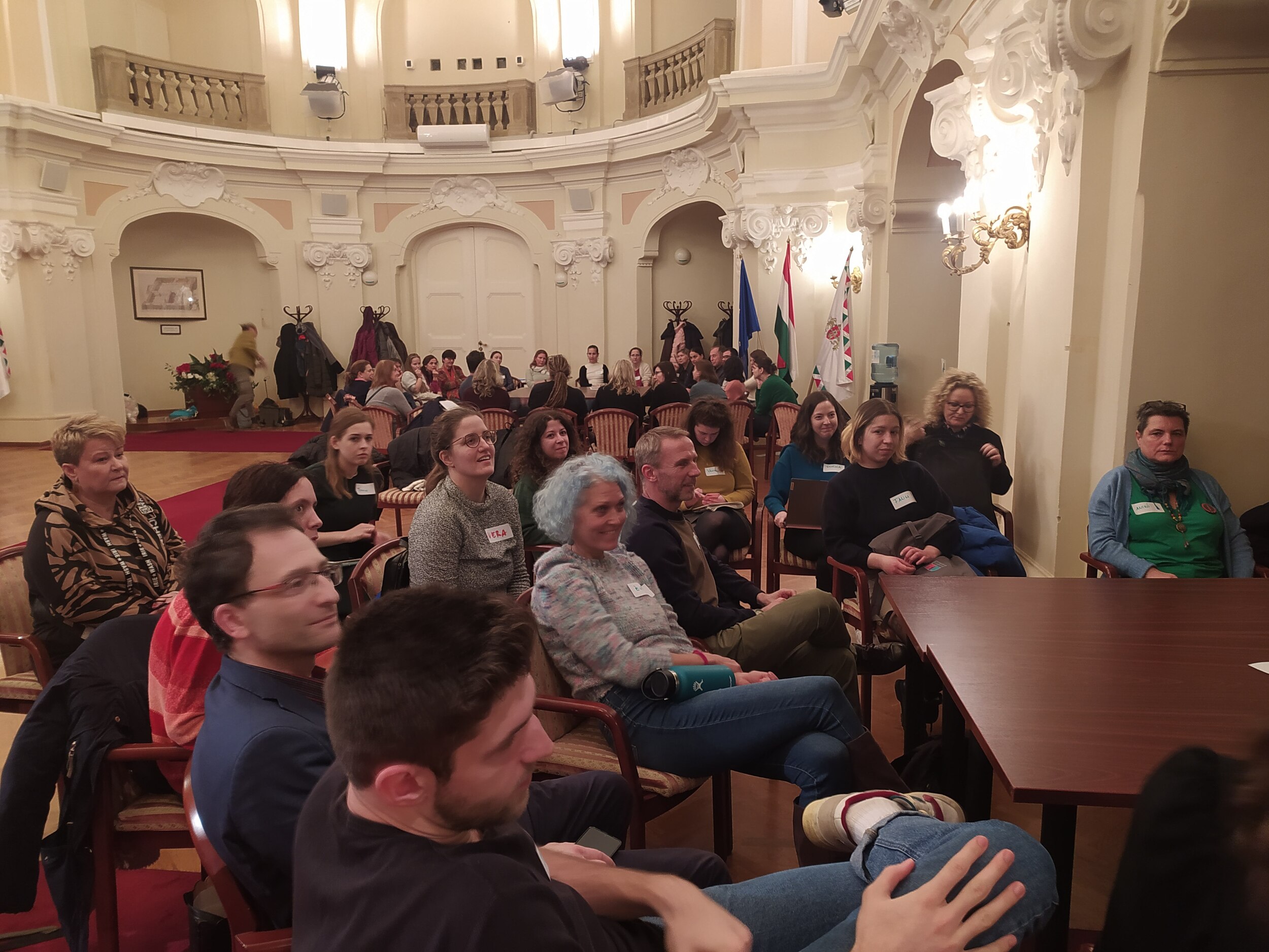 A Fővárosi Önkormányzat szervezésében minikonferenciára hívtuk meg a közösségi kertek kialakítására tervezett három helyszínen kertészkedésre jelentkezőket. A Kerpel-Fronius Gábor főpolgármester-helyettes által megnyitott rendezvényen Kertész Monika, a Kortárs Építészeti Központ és Dr. Pánczél Mária, a ZUG Közösségi Kertekért Egyesület szakértői tartottak szakmai előadást a közösségi kertek kialakításának és üzemeltetésének tapasztalatairól. Ezt követően helyszínek szerinti munkacsoportokban kezdték meg a beszélgetést a leendő kertészek, a meghívott szakértők és a tervezők arról, hogy mi legyen a leendő közösségi kert működtetésének szervezeti kerete, hogyan alakítsák ki a közösségi kertet illetve, hogy mi legyen a közösségi kertek házirendje.