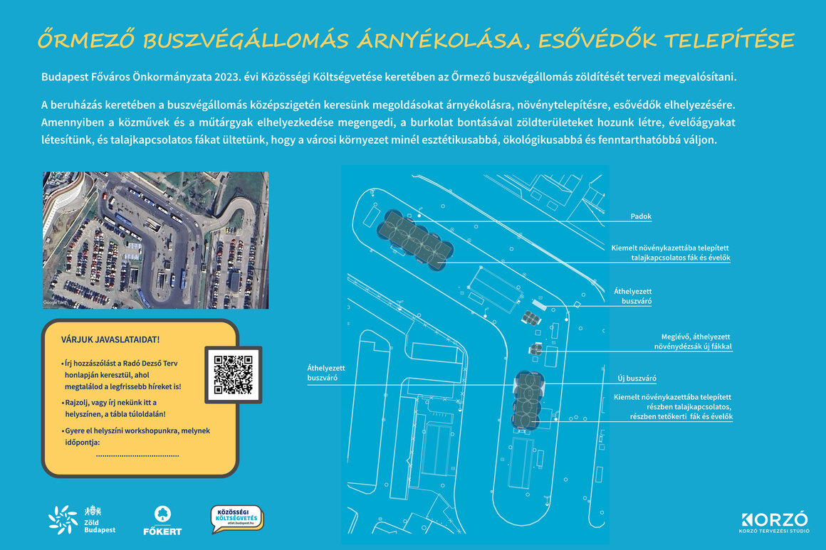 Budapest Főváros Önkormányzata 2023. évi Közösségi Költségvetése keretében az Őrmező buszvégállomás zöldítését tervezi megvalósítani.
