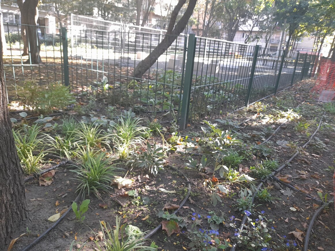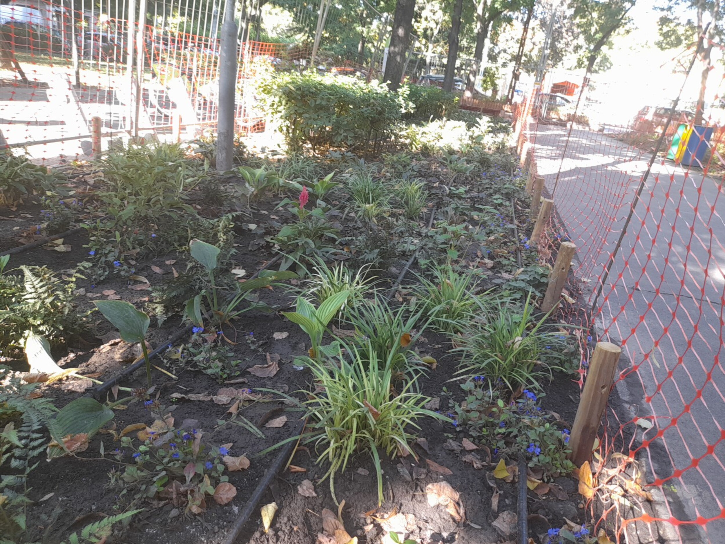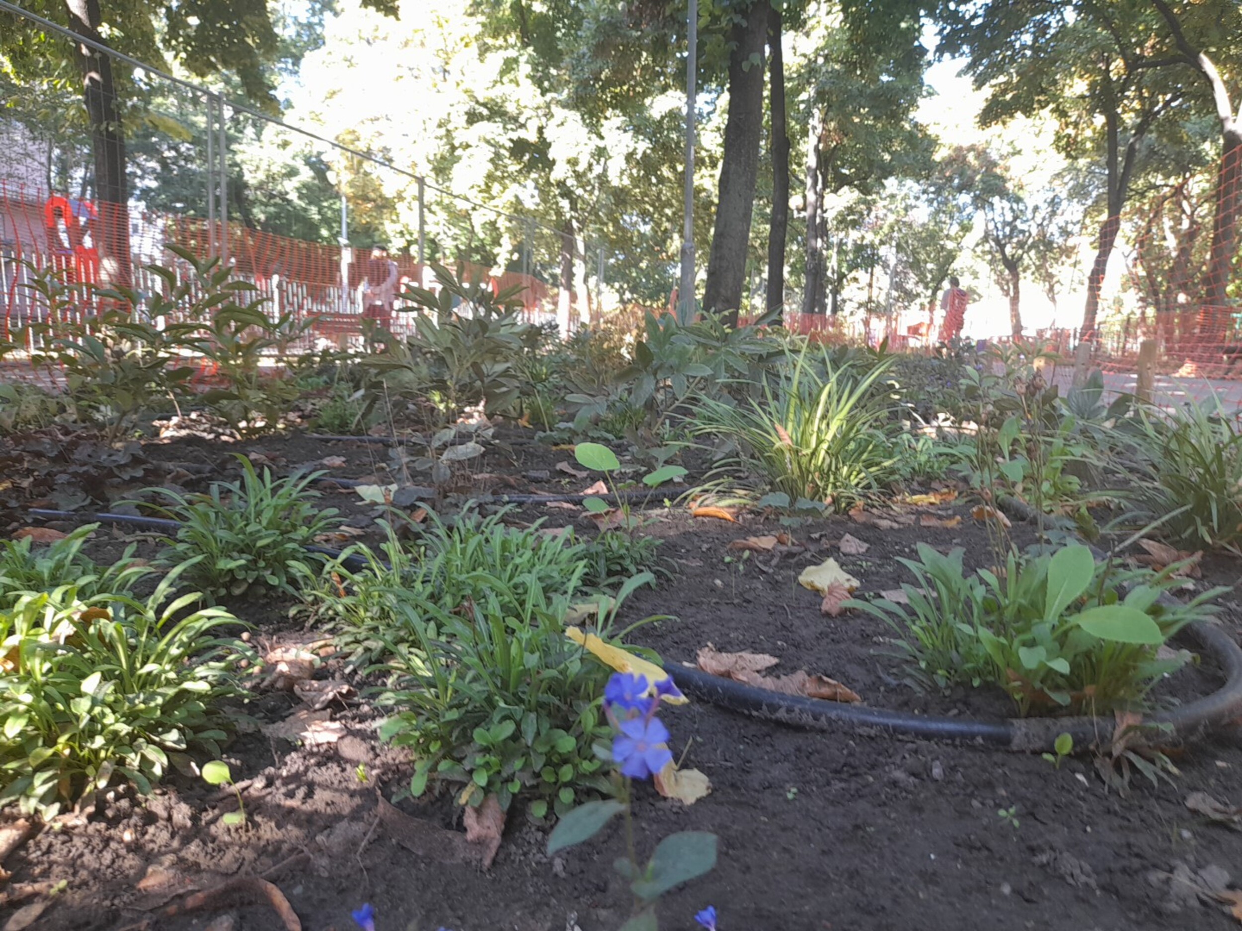 A területet október 5-én adtuk át a használatra, azonban a gyepfelületet az első kaszálásig mobil kerítés védi, a központi sétány mellett pedig hálós kerítéssel védjük az évelőket a gyökeresedési időszakban.