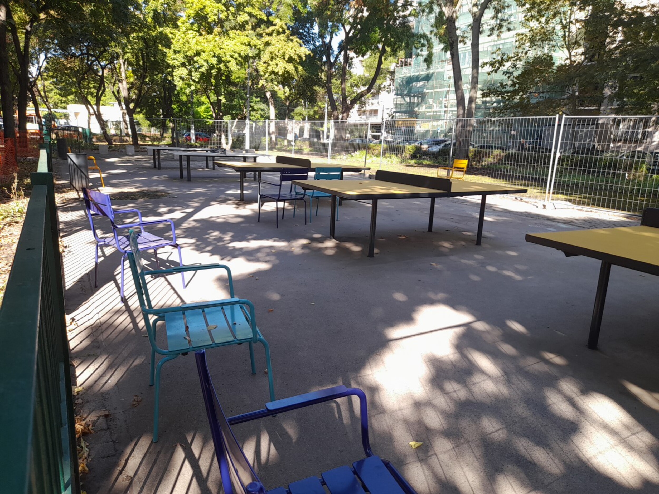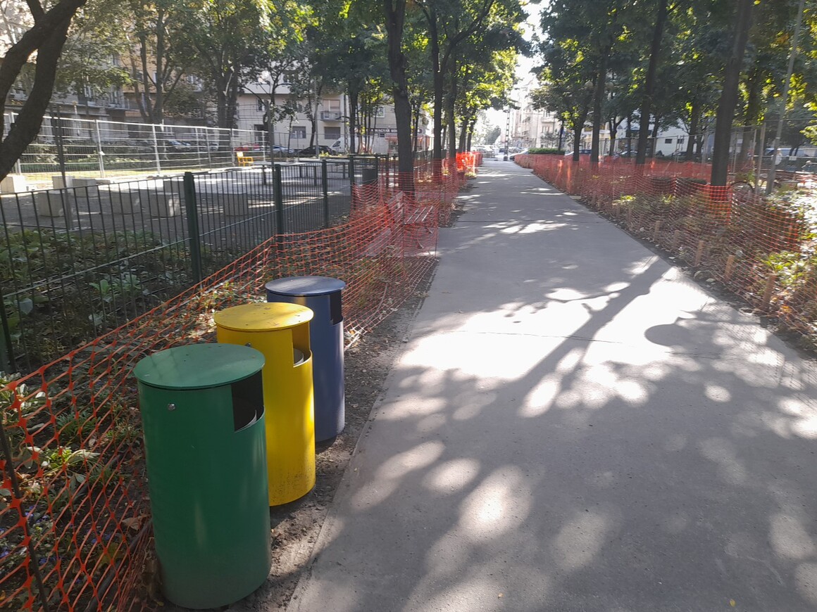 A területen 8 db új hulladékgyűjtőt (közöttük szelektív gyűjtőedényeket) telepítettünk. Az elkerített parki részen mobil székeket helyeztünk ki, amit a használók igény szerint rakhatnak oda, ahol ücsörögni, nézelődni, társalogni szeretnének. A mobil székek kihelyezése egyúttal egy kísérlet is arra, hogy mobil bútorok alkalmazhatók-e közparki területen.