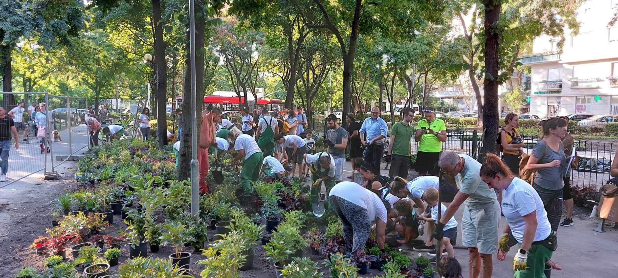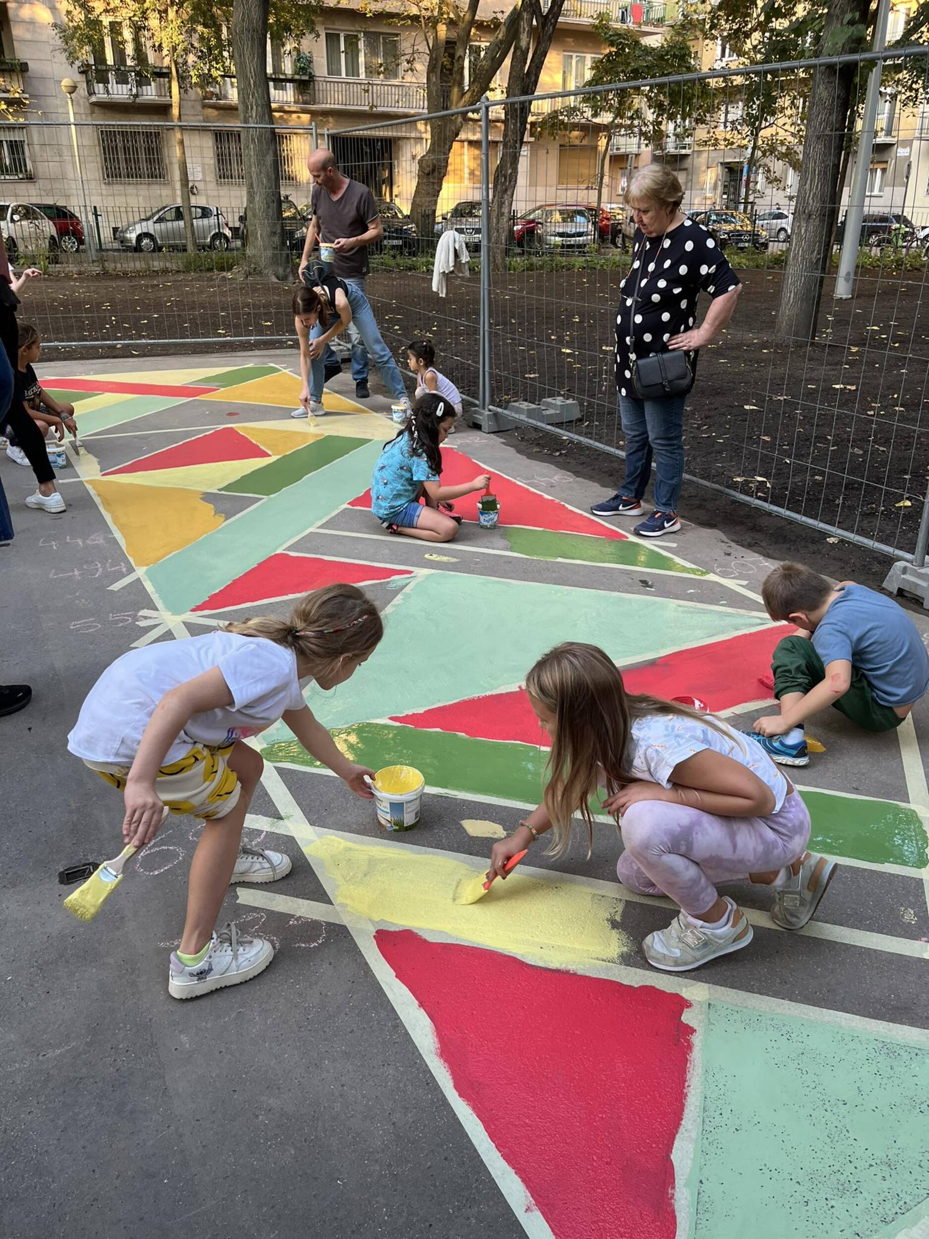 Tegnap a Szent István park kisparki részén sor kerülhetett a közösségi költségvetési projekt utolsó simításaira, egészen konkrétan ecsetvonásaira: vidám színekre festettük az aszfaltot a pingpongasztaloknál és a központi sétány egy részén, de nem voltunk egyedül! Besegítettek nekünk a környéken lakó kicsik és nagyok, ahogy szeptember elején is, mikor a helyi lakosokkal együtt ültettük el a több mint 1500 tő évelő növényt, többek között lágyszárú bazsarózsát (Paeonia lactiflora "Sarah Bernhardt'), kéklevelű árnyékliliomot (Hosta tardiana 'Haleyon') és japán hölgypáfrányt (Athyrium niponicum "Metallicum") is. A frissen ültetett ágyakat és a gyepesített területeket körbekerítettük, hogy a növények megerősödhessenek, de a park többi részéről munkatársaink ma elbontják a lezárást. Így a megújult pingpongasztalokat már birtokba vehetitek, azonban a tegnap lefestett területeket még a jövő héten zárva tartjuk, hogy még egy réteg festékkel és betonlakkal igazán élénk színűvé és tartóssá tegyük a művet.